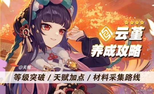 原神进阶攻略:红毹婵娟——云堇一图流攻略~,本期为大家带来云堇的一图流攻略~▲一图流▲角色培养素材