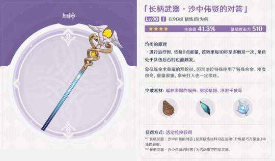 原神4.5白嫖精5“仙女棒”分析:强度如何?可以给谁用?,随着原神4.5版本的开启,大家可以可以拿到新的白嫖活动武器“沙中伟贤的对答”,今天给大家带来的是沙中
