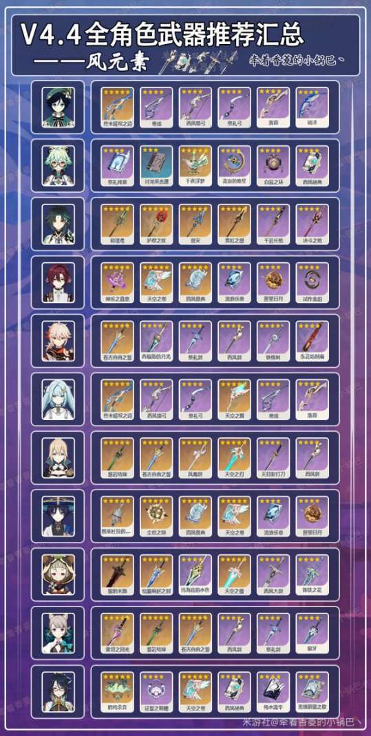 原神4.4全角色武器选择推荐汇总,本帖整理了全角色武器选择推荐。截止4.4版本,后续持续更新,小伙伴们可以关注锅巴一下。