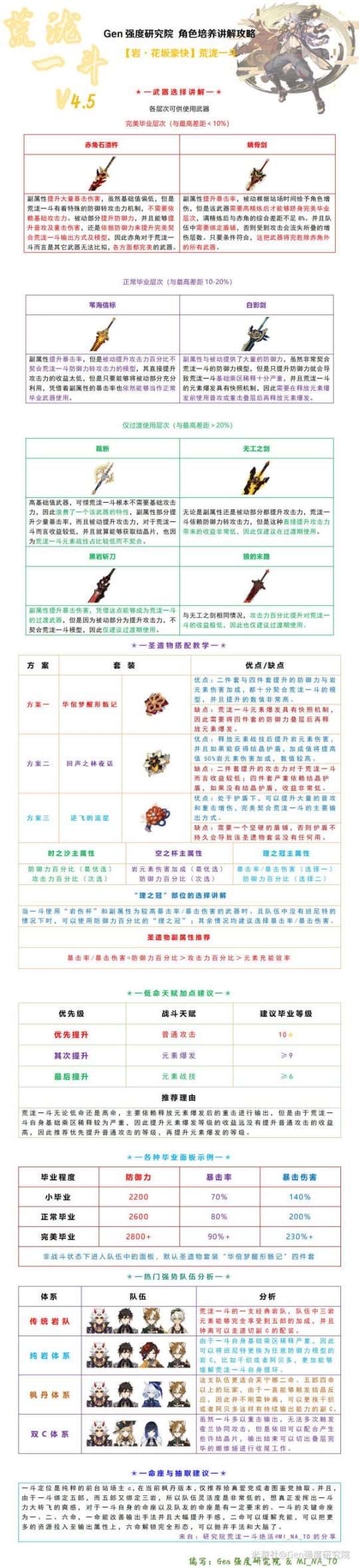 【原神】v4.5攻略 | 荒泷一斗角色详细养成攻略一图流