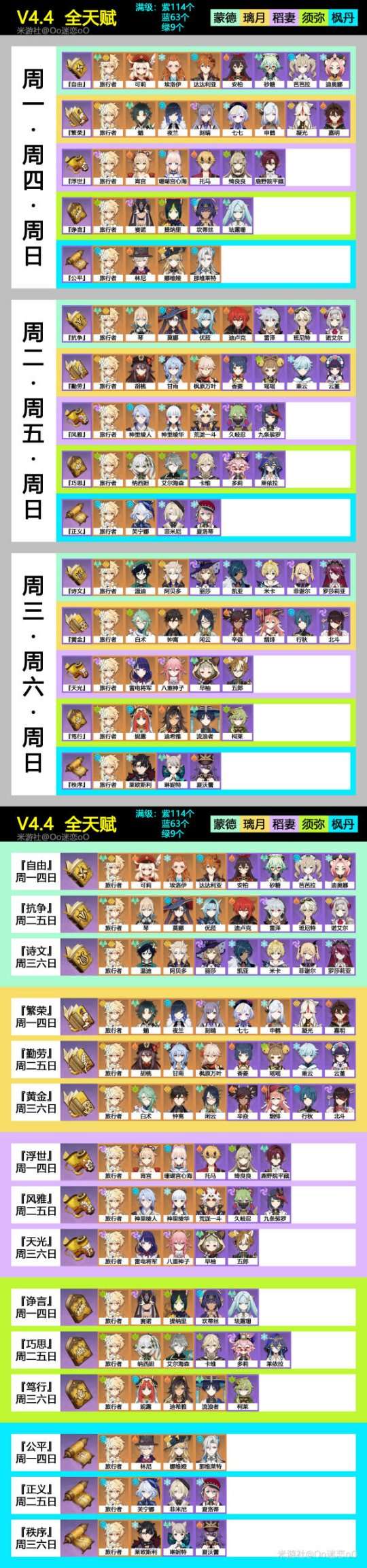 【原神】V4.4攻略 | 材料汇总,全天赋对应角色,一图流