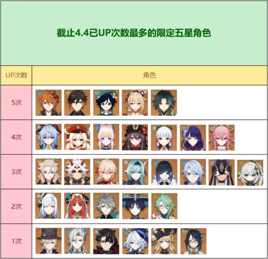 原神UP次数最多的角色总结,这5位角色的UP次数最多!