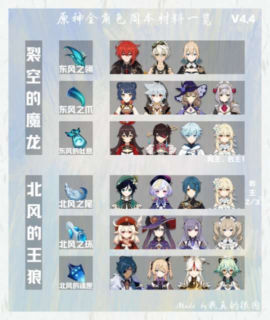 【原神】v4.4攻略 | 全角色周本材料一图流