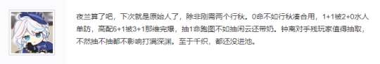 原神:夜兰也成原始人了?低命不如行秋水神,高命不如水龙王,现在的玩家真是越来越离谱了,夜兰这个角色本身好评是非常高的,虽然建模常常被人诟病,但是强度是一直在线