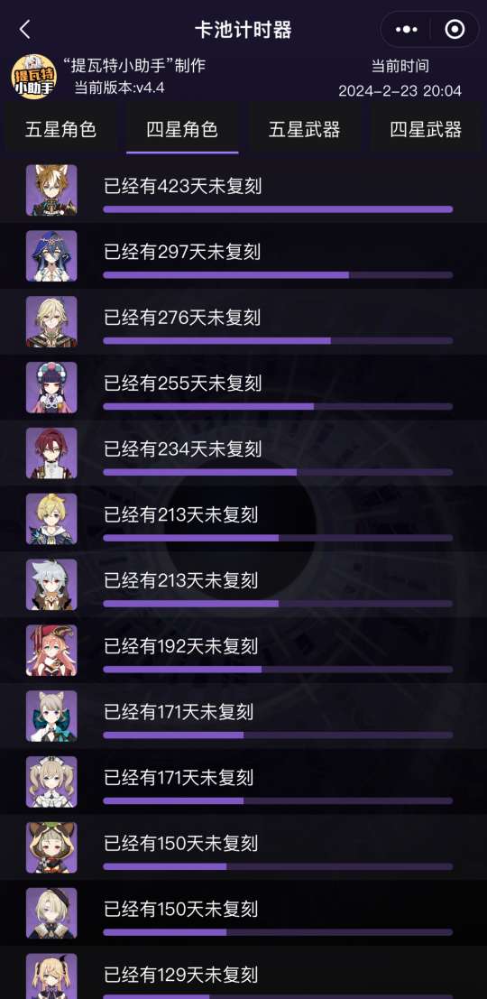 《原神》截至目前最久未UP四星角色总结,你在等哪个四星?,大部分玩家都在关心哪些五星角色最久未复刻,然而四星角色其实也是很重要的,因此今天就给大家来总结一下截