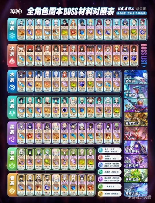 【原神】V4.4材料攻略 | 全角色周本BOSS材料互查对照表