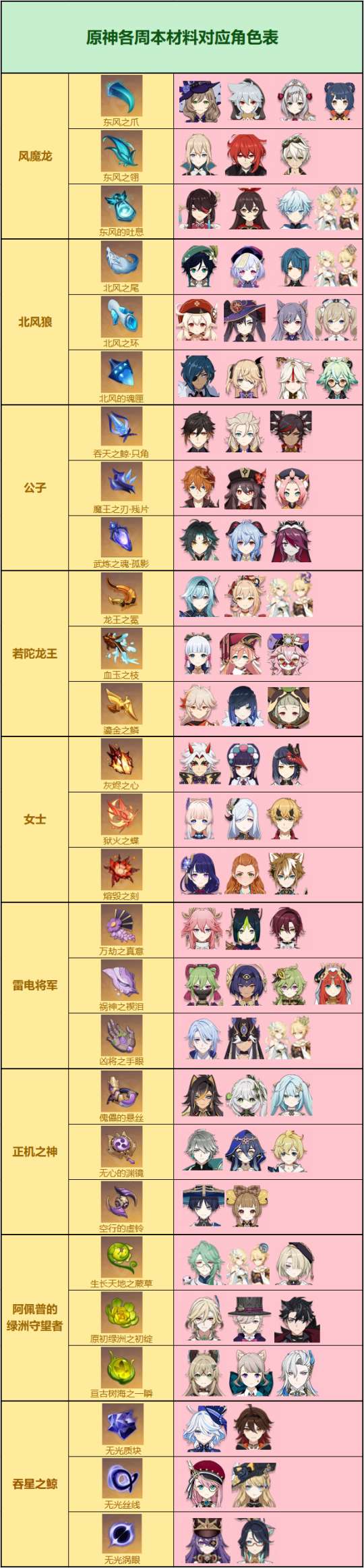 《原神》各周本材料对应角色汇总,哪个周本最值得刷?