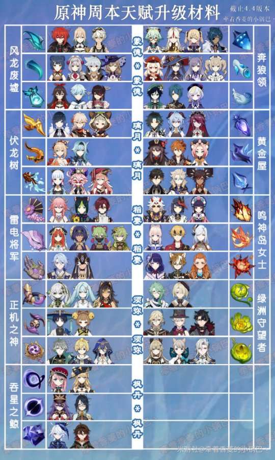 【原神】v4.4攻略 | 全角色天赋升级周本材料汇总