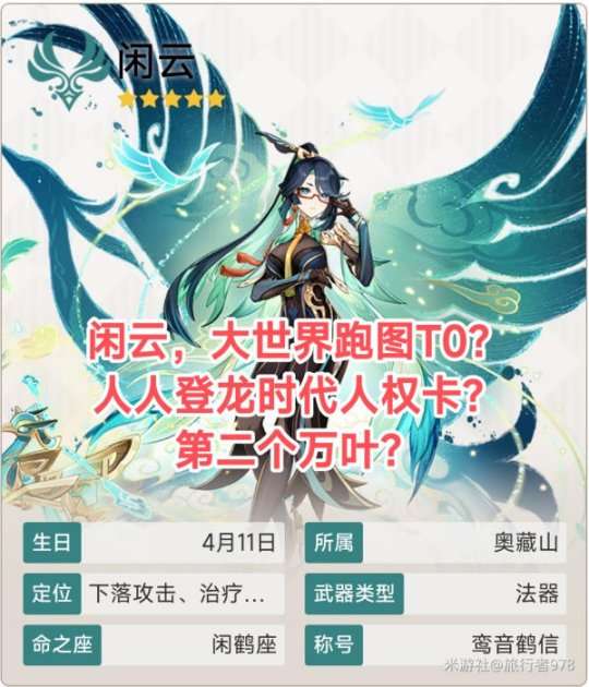 【原神】闲云,大世界T0?全员登龙是否值得抽?值得哪些玩家抽?