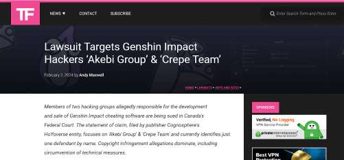 《原神》起诉加拿大外挂作者:要求赔偿五万美元损失,据外媒torrentfreak报道,米哈游的海外子公司Cognosphere在加拿大联邦法院起诉了两