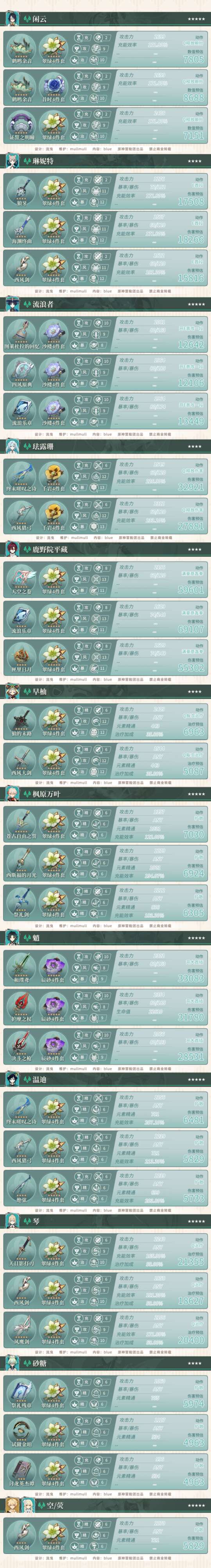 【原神】V4.4攻略 | 全角色参考面板 更新闲云、嘉明