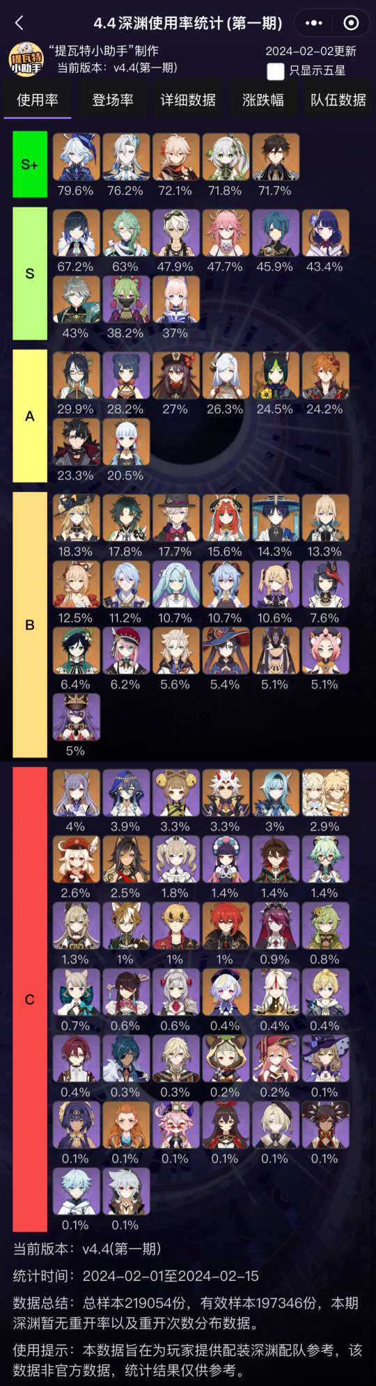 《原神》4.4全角色使用率出炉,提八妲钟使用率大涨,新魈队进入前四!