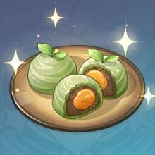 《原神》茶好月圆食谱怎么获得?茶好月圆怎么解锁?,描述:内藏蛋黄的茶酥。先蒸熟咸蛋黄,裹上馅儿,再包上加入了茶粉的面皮,揉成圆月般的形状,烤熟。外皮酥