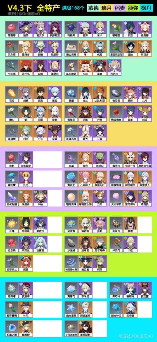 【原神】V4.3角色攻略下半,全特产对应角色,一图流
