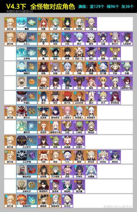 【原神】V4.3角色攻略 | 汇总,全怪物对应角色,一图流