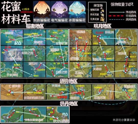 【原神】4.3骗骗花蜜采集路线(大地图版)