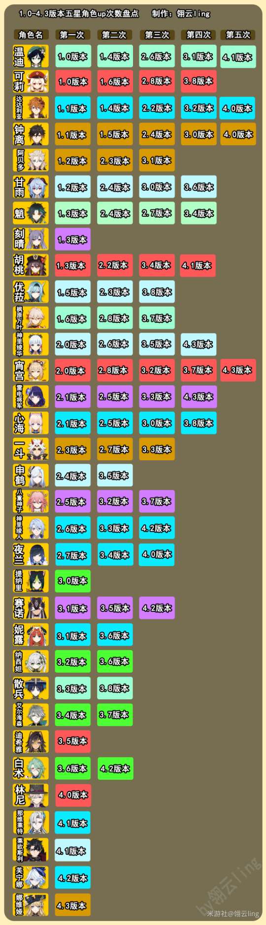【原神】开服至4.3,往期祈愿及全角色up次数盘点