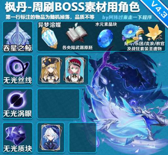 【原神】4.3攻略 | 全角色周刷BOSS素材使用查询表