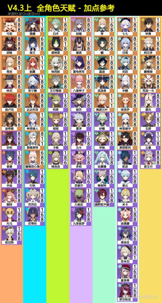 【原神】V4.3上,全角色天赋,加点参考,一图流
