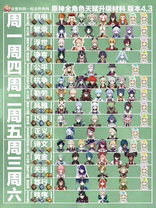 【原神】4.3版本攻略 | 全角色课程表 加点推荐 突破素材