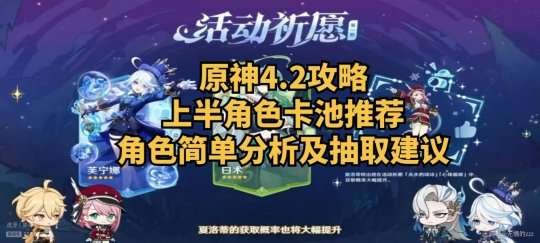原神4.2版本上班卡池即将正式上线!针对这个重要的游戏更新,我们特别为大家准备了一篇针对角色卡池推荐及抽取建议的分析文章,帮助你更好地了解各个角色的特点与技能,以及如何最有效地抽取自己想要的角色。想要在原神中取得更高的战斗胜率和更加愉快的游戏体验吗?不妨来看看我们的分析吧!