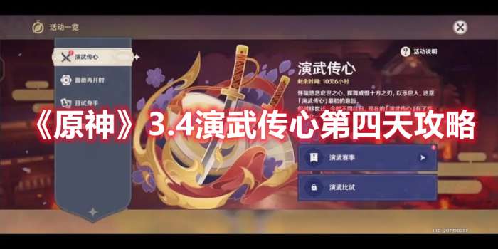 《原神》3.4演武传心活动是游戏中目前正在进行的活动,玩家在这次的活动中会有很多的关卡挑战需要进行,可能有玩家还不清楚这个活动的第四天挑战要怎么过,下面小编就给大家整理了具体的攻略,一起来看看吧!《原神