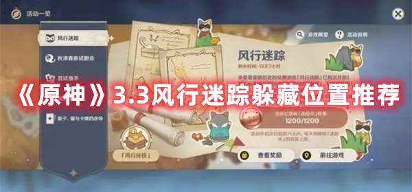 《原神》3.3风行迷踪活动是游戏中目前正在进行的新活动,玩家在这次的活动中需要完成捉迷藏的挑战,可能有玩家还不清楚这次活动中有什么地方比较好躲,下面小编就给大家整理了具体的位置推荐,一起来看看吧!《原神
