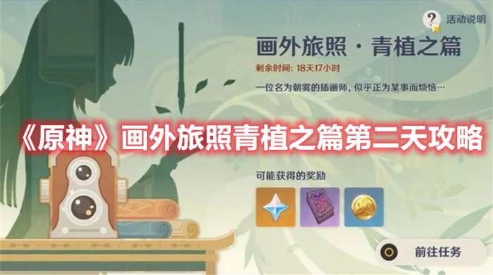 《原神》画外旅照青植之篇是游戏中的全新拍照活动,玩家每天都会有新的拍照挑战需要完成,可能有玩家还不知道这个活动的第二天拍照要怎么过,下面小编就给大家整理了具体的攻略,一起来看看吧!《原神》画外旅照青植
