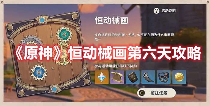 《原神》恒动械画是游戏中的一个特殊活动,玩家在这个活动中需要控制齿轮进行搭配咬合,每天活动都会开放新的关卡,可能有玩家还不清楚第六天的关卡怎么过,下面小编就给大家整理了具体的关卡攻略,一起来看看吧!《