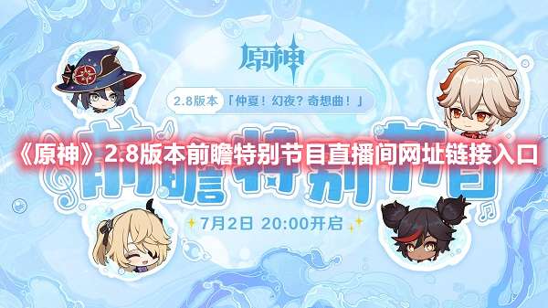 《原神》2.8版本前瞻特别节目即将开始,对于本次的版本新内容相信也是有很多玩家都比较感兴趣的,可能有玩家还不知道这次的直播在哪里看,下面小编就给大家整理了2.8版本的前瞻直播链接入口,一起来看看吧!《原神》
