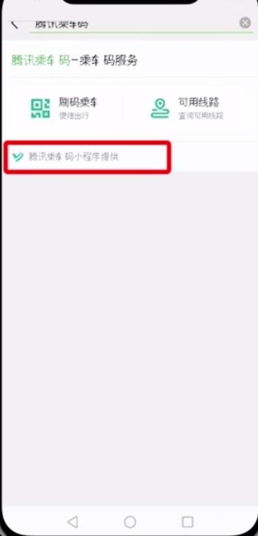 3、输入“腾讯乘车码” ,进入它的小程序,