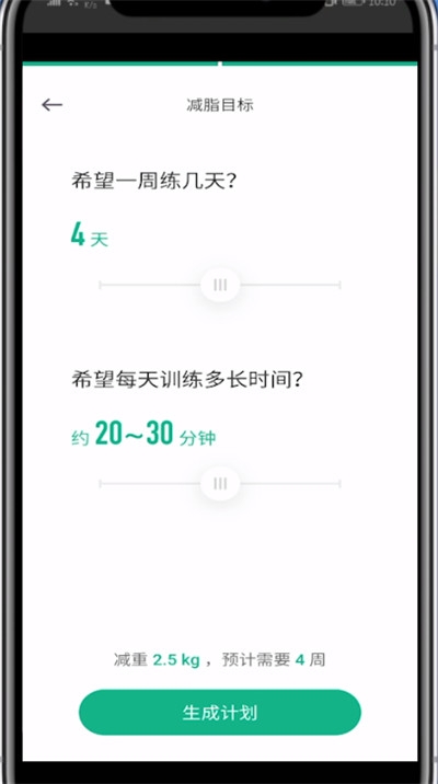 最后编辑好训练时间和时长点击生成计划即可