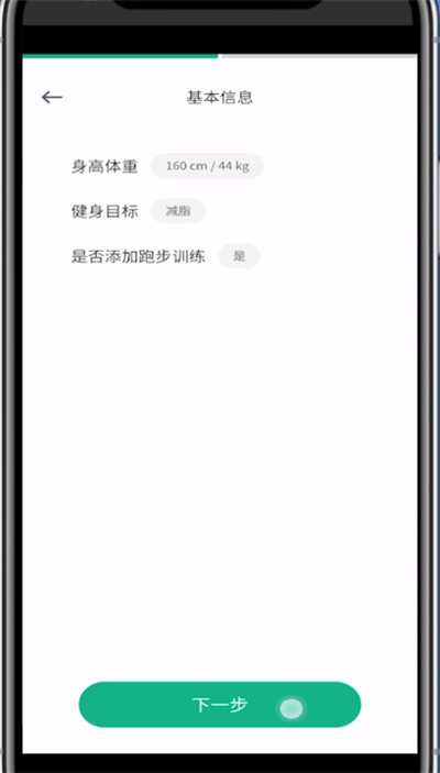 根据实际情况选择目标体重点击下一步。