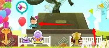 7.小孩抱商人后,下来和那一大堆气球互动,引发剧情,主角掉到雕像上方,往右走点击扣针通关。