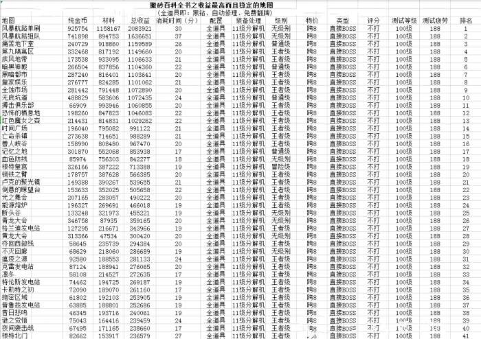 DNF100级2020搬砖收益排行表