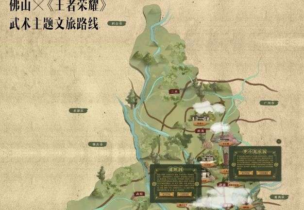 在发布会中,腾讯互娱全国区域推广业务负责人甘霖还详细介绍了“佛山✕王者荣耀武术主题文旅路线”。该路线串联起了佛山的14个核心景区,游山玩水期间还能感受武术文化的魅力!