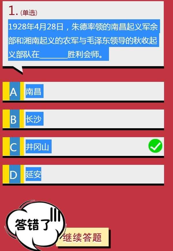 软件提交 专题合集 热门手游1928年4月28日,朱德率领的南昌起义军余部和湘南起义的农军与毛泽东领导的秋收起义部队在哪里胜利会师,第一章节的课后习题很多玩家都在询问答案,下面为大家介绍学生团员寒假十课题第一章题目答案。