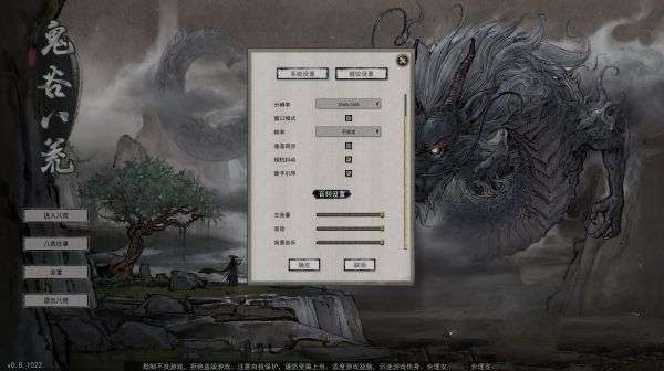 鬼谷八荒的游戏系统十分简洁明了,在主界面左侧玩家可以选择开始游戏、查看游戏内的成就列表及解锁方式、更改游戏设置以及退出游戏。