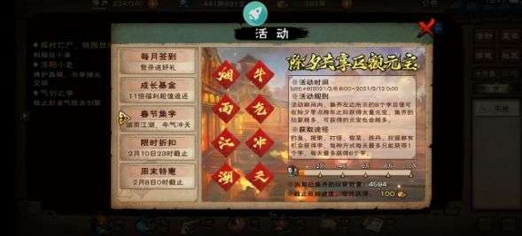 3、集齐“烟雨江湖,共迎鼠年”八张字帖后,便可在除夕零点的跨年之际获得大量元宝。