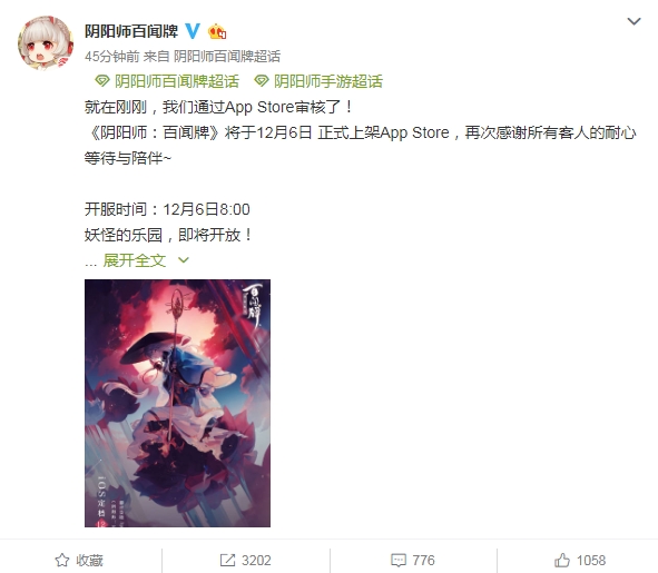 软件提交 专题合集 热门手游就在昨天还发公告称由于应用商店审核原因无法如期上线的《阴阳师:百闻牌》,12月4日发布最新公告:我们通过App Store审核了!