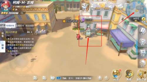 油菜花右上角的布店老板也需要你去咨询咨询。几家商铺老板都问了一圈,返回商人那里交差吧。