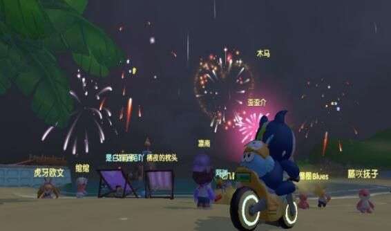 其实烟花秀就在海滩处可以看到,玩家们可以先来到阳光牧场,之后进入海滩,如果没被别的玩家使用掉的话就会有道具,点击即可开始放烟花了。