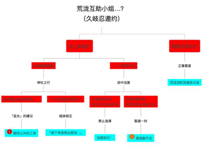 开始——荒泷互助小组…?——处置之方——(默默退后半步)——正事要紧——窃听风云——非日常事务——重大决定——随便点(成就:楼上区域)