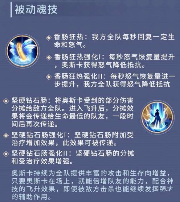 奥斯卡死亡后进入一段时间的 “飞升”状态,期间不受伤害也无法被技能选中,奥斯卡“飞升”时可正常释放所有技能,并提高我方全队减伤。