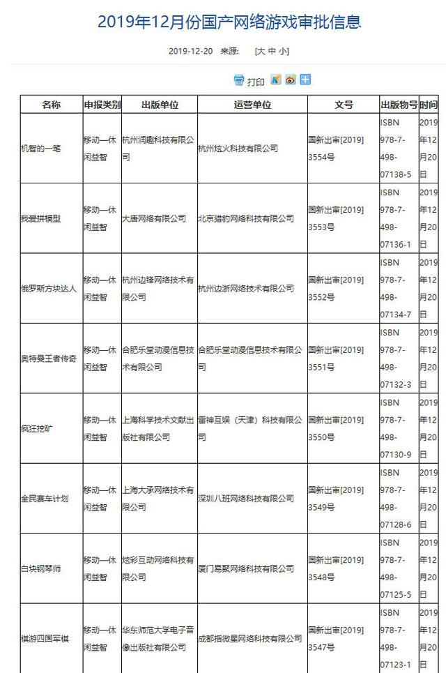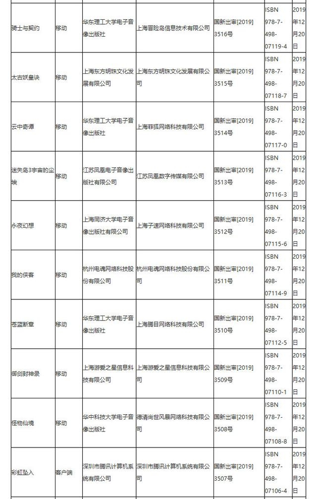 软件提交 专题合集 热门手游近日,广电总局公开了2019年12月新一批国产网络游戏过审游戏。本次总共过审了53款游戏,而本次终于出现了大家略微期待的一些游戏,如方块游戏代理的网络游戏《武侠乂》、腾讯单机游戏《彩虹坠入》、网易吃鸡手游《风云岛行动》等,一起来看看还有哪些游戏过审吧!