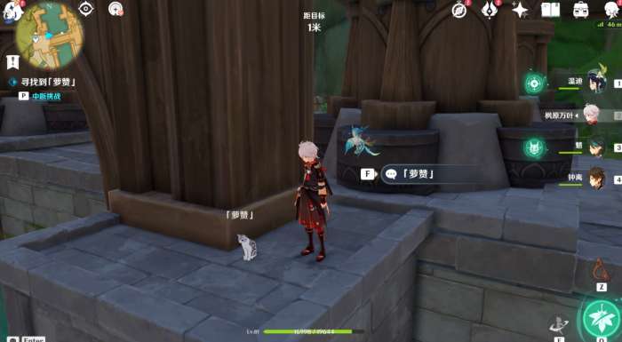 ●寻找猫咪时,界面UI也会有对应的提示,如离小猫的距离,可以根据这个来移动方向或者改变垂直距离(爬上去或者飞下来)。