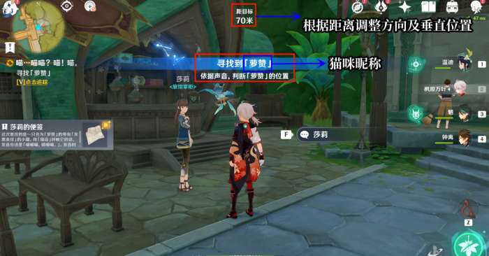 ●找到猫咪之后与猫咪进行对话,说出正确的猫语即可抱走猫咪,返回莎莉处交付任务即可。