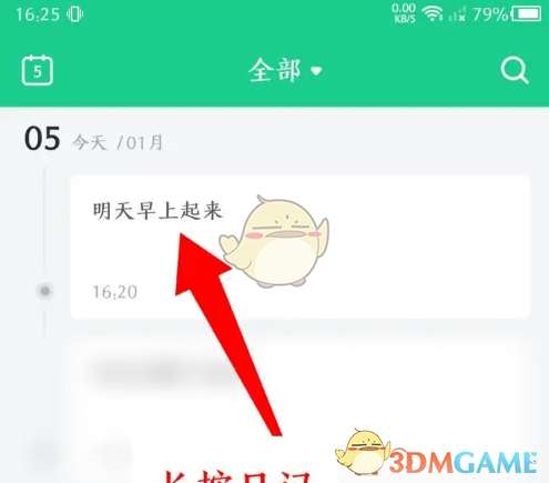 1、在日记主页面,长按要删除的内容。