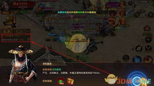 游戏以主线挂机玩法为主,玩家通过点击左侧的主线任务,角色就会自动寻路进行完成,完成任务可以获得大量经验和道具。