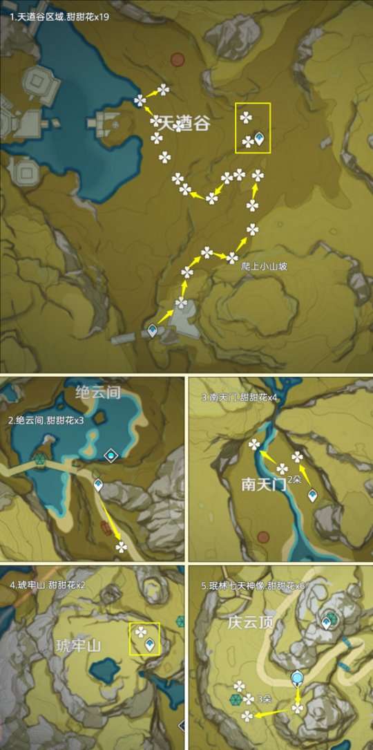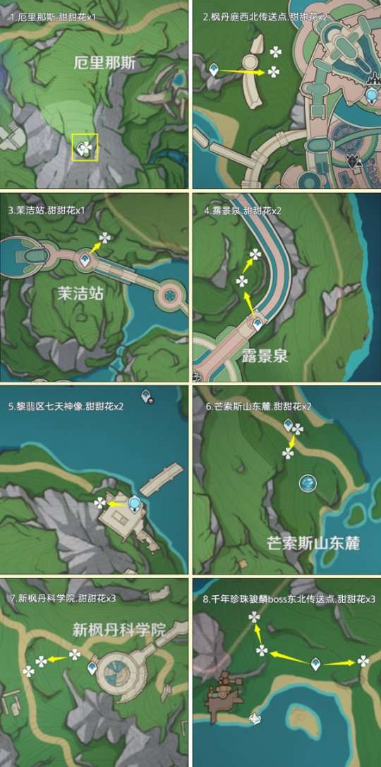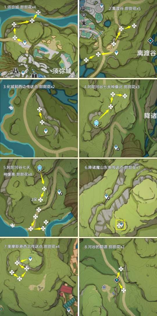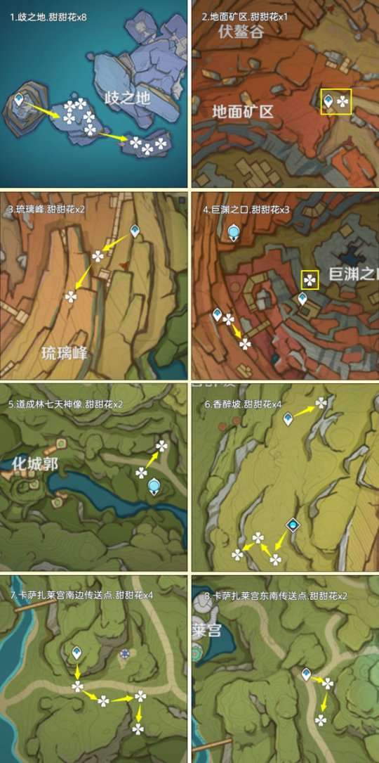 软件提交 专题合集 热门手游该路线推荐玩家:缺少甜甜花的玩家,由于制作料理需要大量的糖,估计还是得跑一趟的